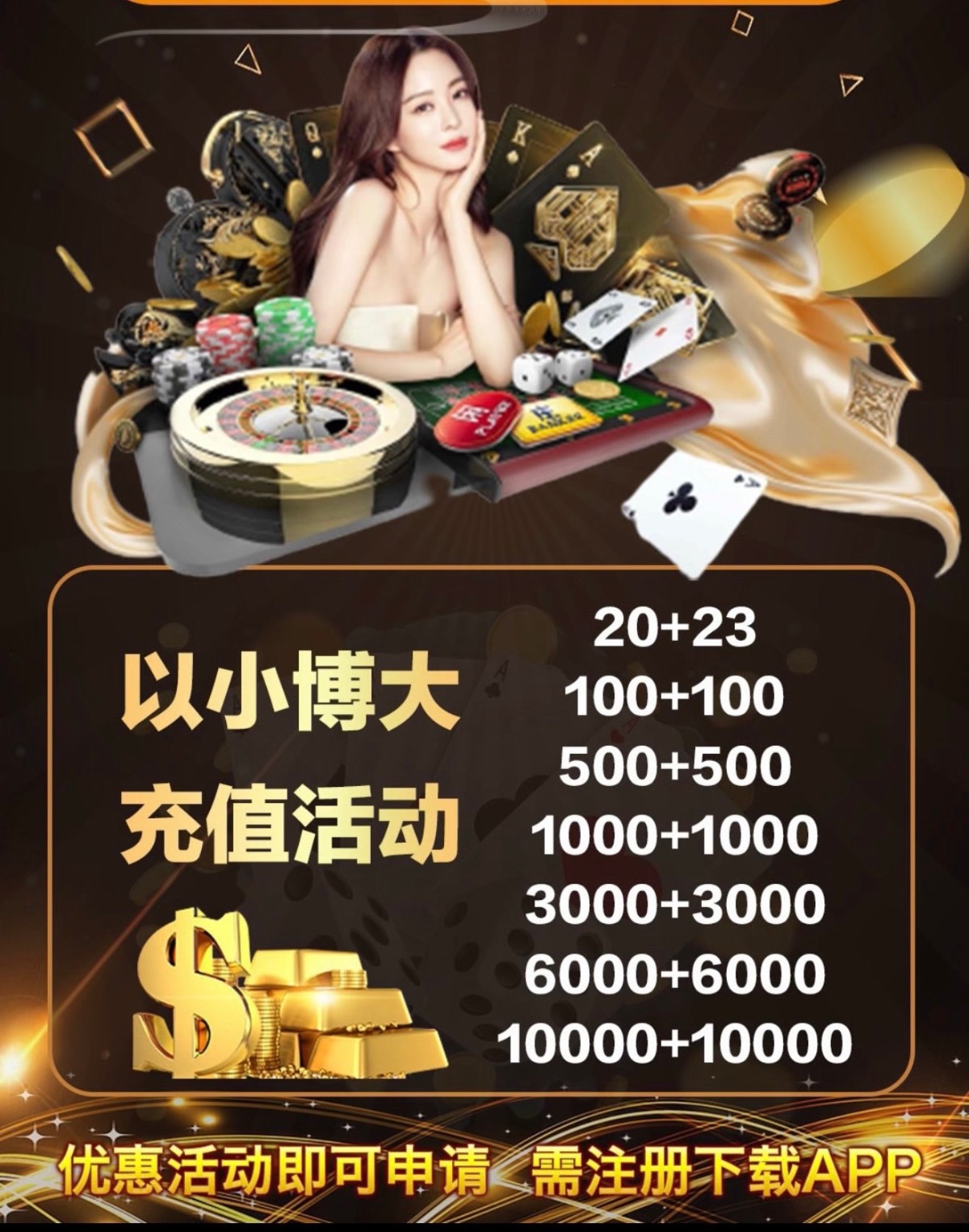 特邀碰瓷活动区自助申请,不送过段时间在看;老玩家回归,历史充值过满100+,最近7天无充值记录,可以申请以小博大,具体规则看介绍,有兴趣去看看。