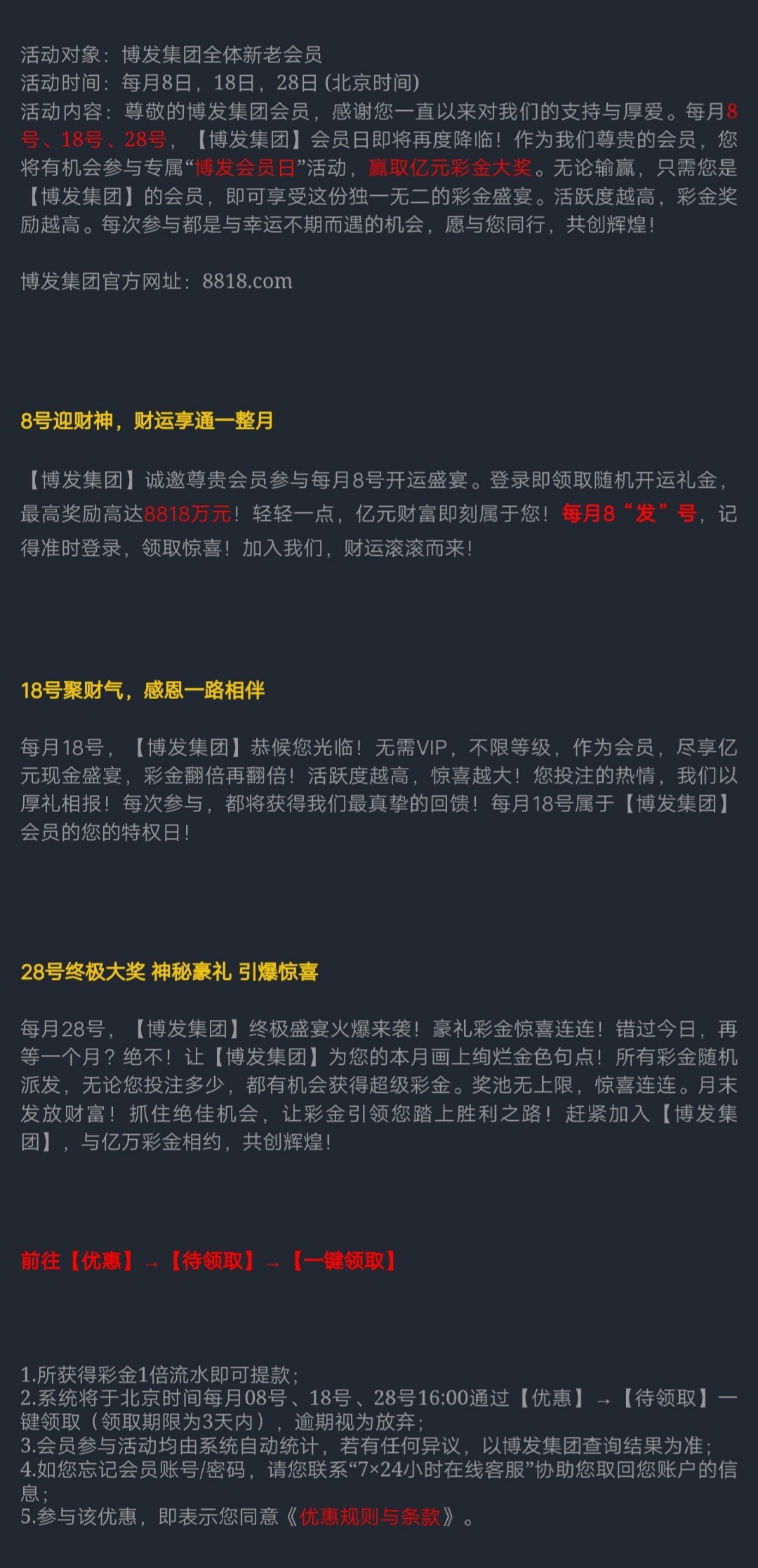 【博发】逢8全民会员日回馈